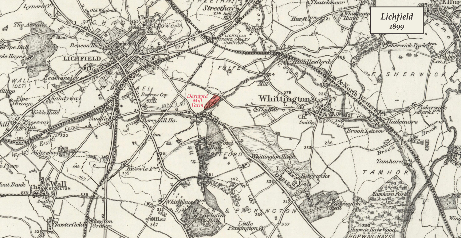 By the time of the 1891 census, George seems to have escaped the life of a carter and general labourer and followed his interest into agriculture, with his occupation now given as farmer, and the Lees family living at Darnford Mill Farm, just over a mile and a half from the centre of Lichfield.