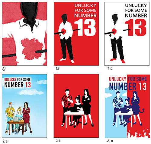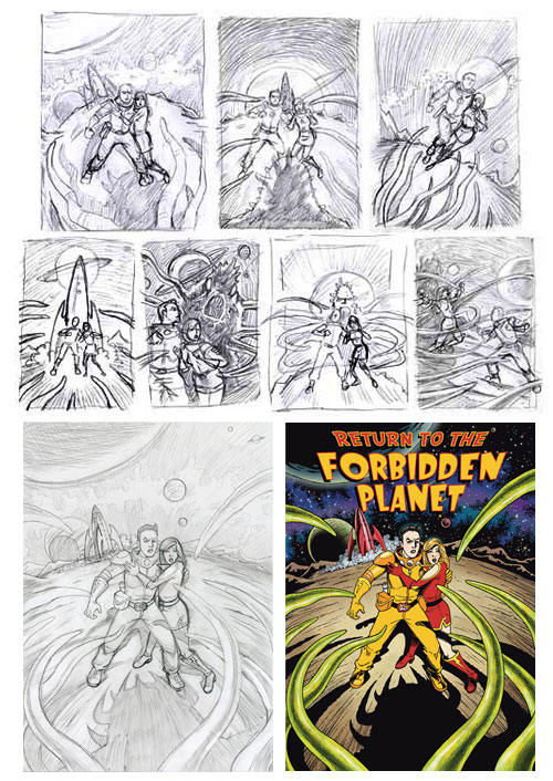 Here are some examples showing both the rough sketch stage and the finished artwork.