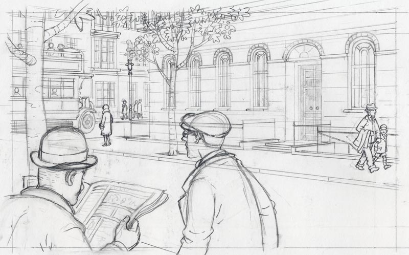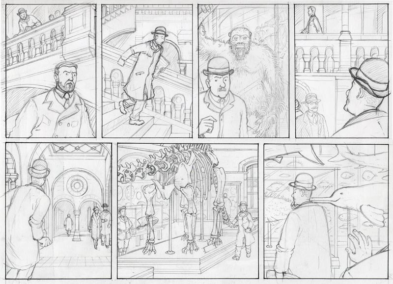 My pencils start out very loose and I gradually tighten them up so they look quite finished by the time they're ready for inking. Here are some examples which you can click on to see bigger versions...