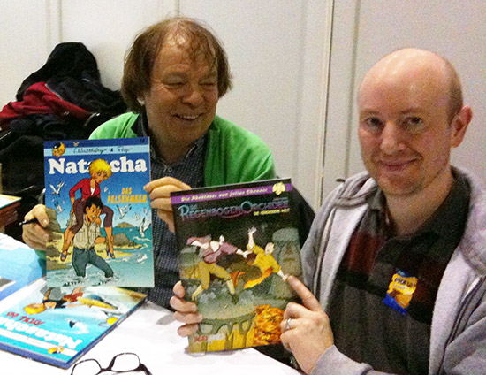 Day one of the festival was hugely enjoyable - I was busy signing and sketching for most of the day and I met a ton of marvellous comic creators and readers. From my last German trip it was lovely to reacquaint myself with Tatiana Goldberg, also published by Tellerup and whose fantastic book, Anima, was shortlisted for a Ping Award (the winners were to be announced that evening); also Frank Madsen, Sussi Bech and Ingo Milton. I was also delighted to meet (all too briefly) Lars Jakobsen, creator of the fantastic Mortensen books - which Colin had turned me onto a couple of years previously.
